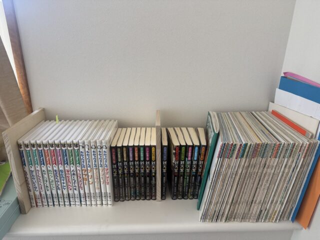 子供って「あの本のあの場面どうだったかな」とおもむろに読み返すことも多いので、読んだ本が常に手元にある状態をキープするようにしています。図書館で借りた本だと、これがスムーズにいかず、ストレスになります。